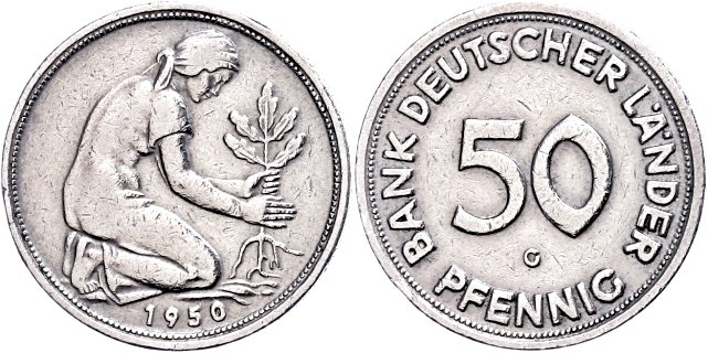 50 pfennig coin »BANK DEUTSCHER LÄNDER« and mint mark »G«