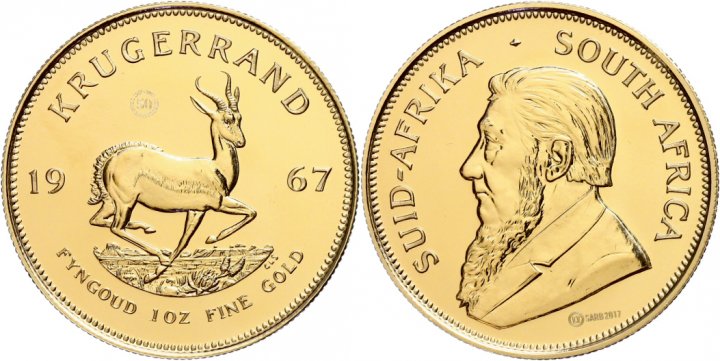 The Krugerrand is the most popular bullion gold coin in the world. On the obverse is the portrait of Paul Kruger, on the reverse is a picture of the South African national animal, the springbok. This coin usually weighs 33.93g. The fine weight is exactly one ounce, that is 31.10g. With a few exceptions, this coin is traded at the daily gold price.